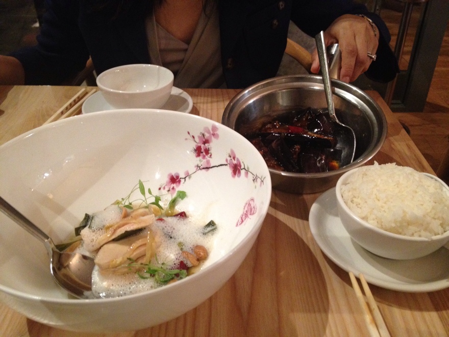 The fifth course was the chicken with peanuts and ‘gong boa’ sauce – this was the first of the main meals. I really enjoyed this dish.. the chicken had a really delicate flavour and the peanuts went so well with it. The chicken also just melted! We also got an aubergine dish with this which I really liked and some rice.. that helped!